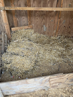 We put a bale of hay inside the shed for them to curl up and stay warm.
